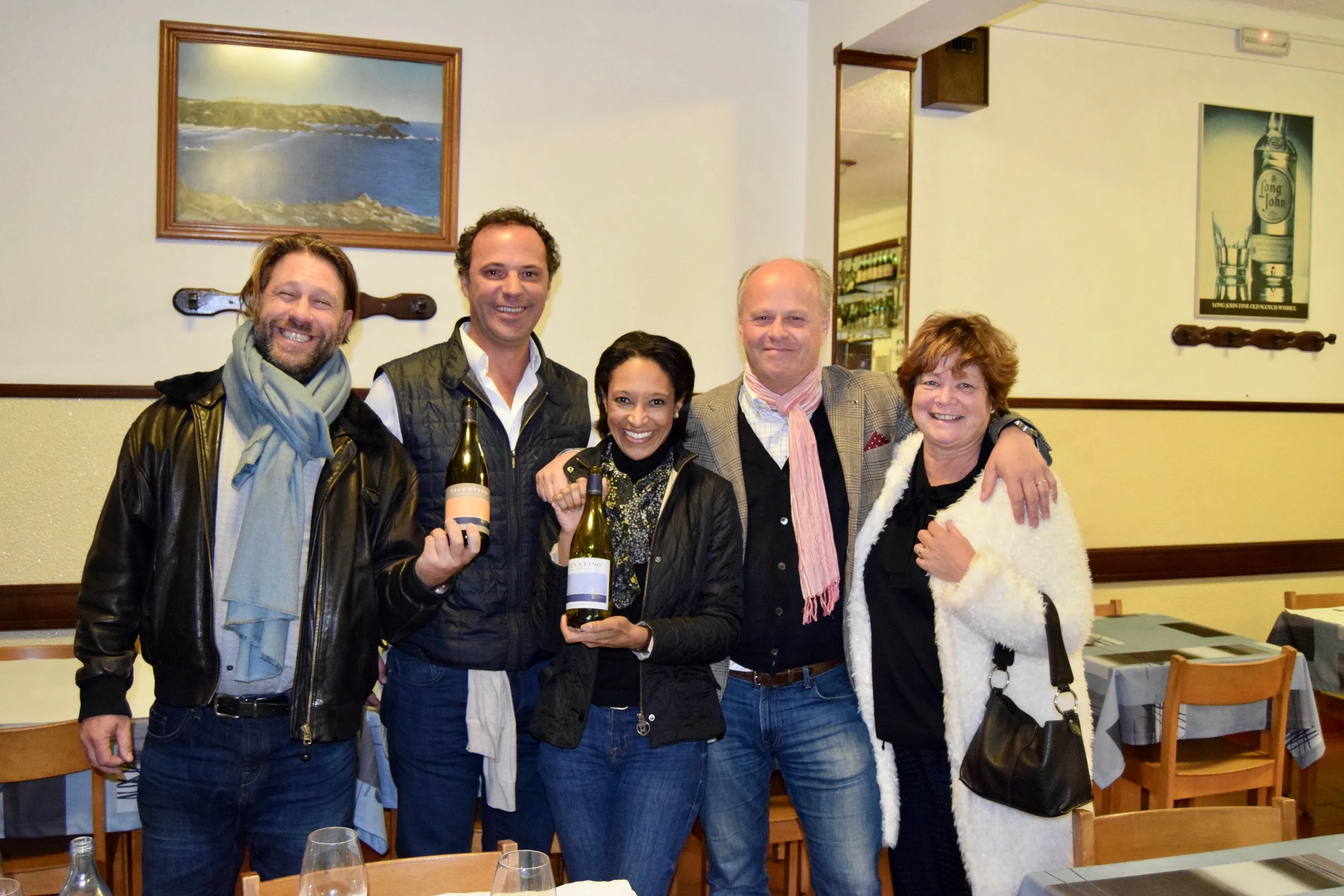 luis mota veiga, bernardo cabral, mr. & mrs. ole martin siem celebrating vicentino wines near herdades da frupor